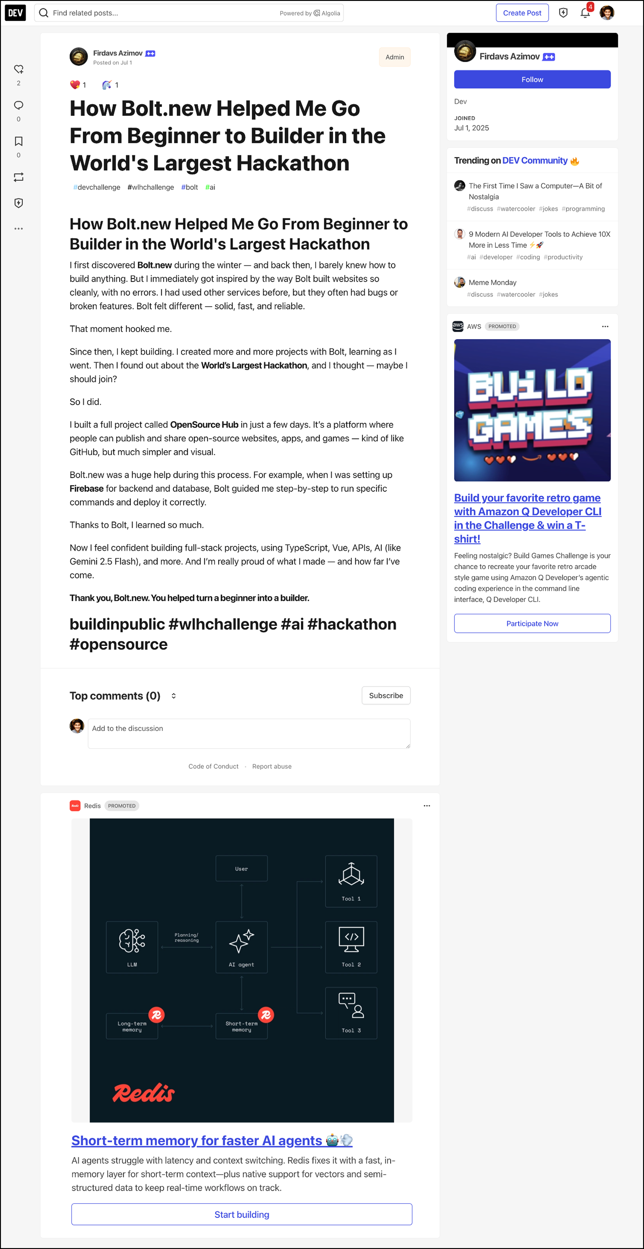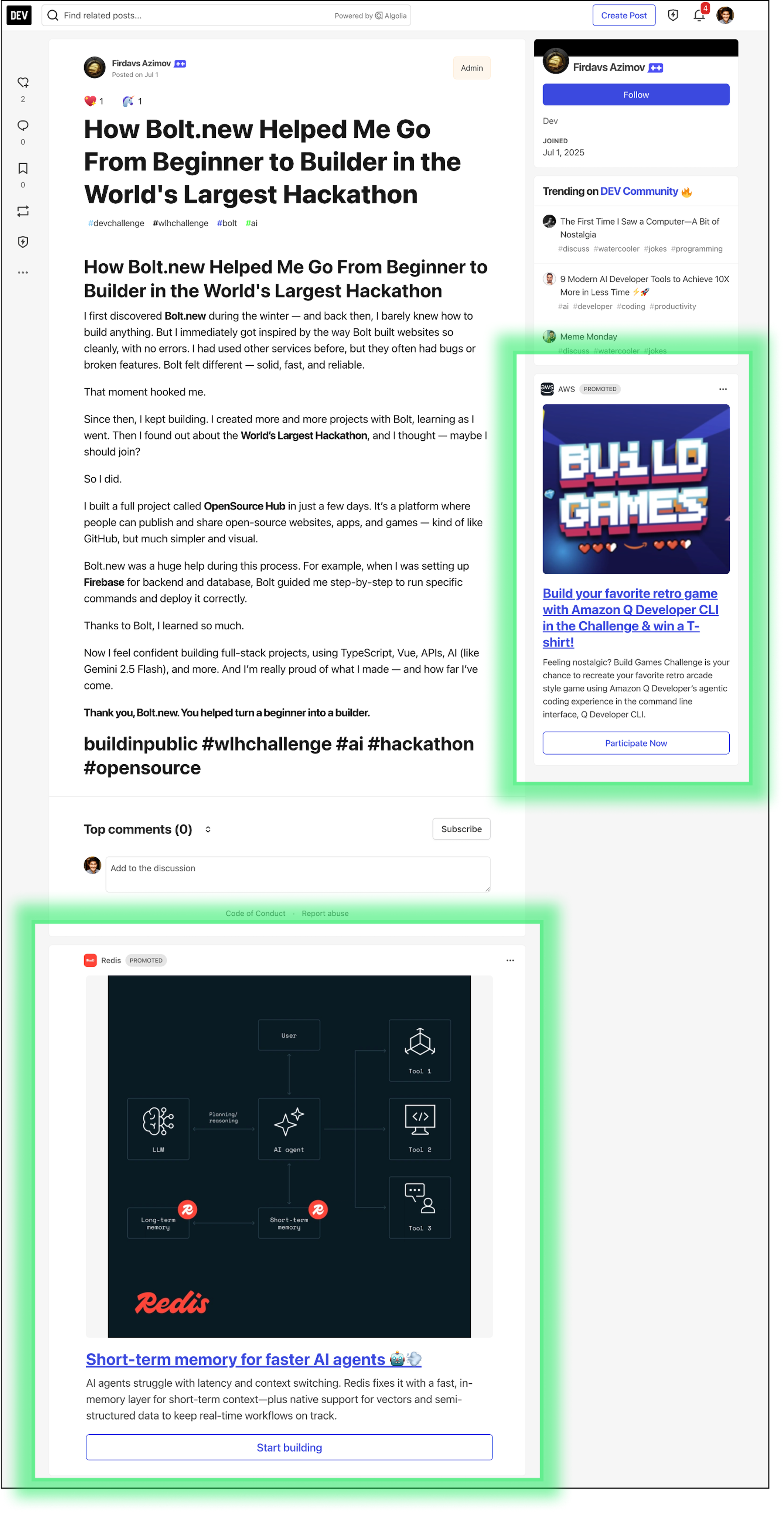 DEV displays ads in strategic locations throughout the platform to maximize visibility while maintaining a positive user experience.
